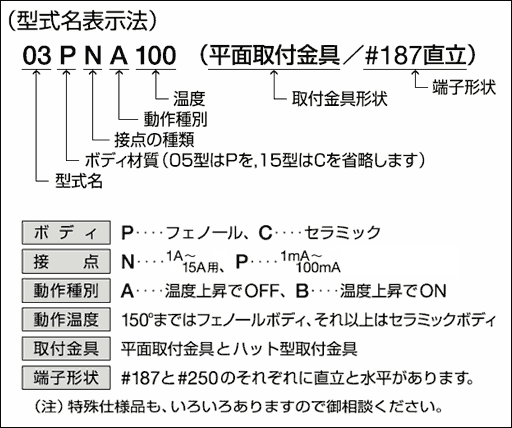 型式名の後に必ず一文字分のブランクをおいて型式名と温度の混同を避けてください。