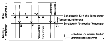 Das System der Modellkennzeichnung für Thermostate mit Regelfunktion unterscheidet sich geringfügig von dem für Thermostate mit reiner Schutzfunktion. (Modellkennzeichnung 1) bei TPS ![]() (Modellkennzeichnung 2) bei TPS ![]() (Modellkennzeichnung) bei Hochtemperatur-Thermostaten ![]() Modellbezeichnung Setzen Sie unbedingt eine Leerstelle hinter die Modellbezeichnung, damit es nicht zu Verwechselungen zwischen dieser und der Angabe der Betriebstemperatur kommt Betriebstemperatur TPS (innerhalb eines Bereichs von -10 °C bis 110 °C) Hochtemperatur-Thermostate (innerhalb eines Bereichs von 150 °C bis 400 °C) (Einstelltemperatur mit gewisser Toleranz) Kontaktkonfiguration X: Kontakte öffnen bei Temperaturanstieg X(überstrichen): Kontakte schließen bei Temperaturabfall Y: Kontakte schließen bei Temperaturanstieg Y(überstrichen): Kontakte öffnen bei Temperaturabfall Hinweis: Konfiguration X und X(überstrichen) beziehen sich auf dasselbe Produkt. Im Fall erforderlicher präziser Temperaturregelung bei Temperaturanstieg geben Sie X an. Im Fall erforderlicher präziser Temperaturregelung bei Temperaturabfall geben Sie X(überstrichen) an. Gehen Sie bei Kontakt Y und Y(überstrichen) sinngemäß ebenso vor. Das folgenden Diagrammbeispiel veranschaulicht Kontaktkonfiguration, Betriebstemperatur und Temperaturfaktoren ![]() MQT8H K35XC steht für ein Thermostat mit Crossbar-Kontakten (K bedeutet Crossbar-Kontakt). Bei der 5-A-Serie mit einem Ruhekontakt ist z.B. eine Modellkennzeichnung wie M3 70XZB möglich, wobei Z Kontakt mit dem Ruhekontakt bedeutet. Das obige Diagramm zeigt außerdem auch, wie ein Thermostat mit Ruhekontakt Y/Y(überstrichen) arbeitet; im Fall von X/X(überstrichen) sind Öffner/Schließer gerade entgegengesetzt. Temperaturdifferenz-Stufe (bei TPS) A (3 ±1), B (4,5 ±1,5), C (6,5 ±1,5), D (10 ±2) Bei Matsuo-Thermostaten ist C Standard bei Konfiguration X/X(überstrichen) und B bei Y/Y(überstrichen). Geben Sie bitte ggf. genau die Temperaturdifferenz an, weil die maximale Stromstärke gemäß dem spezifizierten Temperaturdifferenz reduziert wird. Die Angaben zur 2- und 5-A-Serie sind aus PDF-Datei ersichtlich. Bestellanweisungen. Machen Sie bitte bei der Bestellung die folgenden Angaben: 1. Modellbezeichnung 2. Menge 3. Einstelltemperatur und toleranz 4. Temperaturdifferenz (Temperaturunterschied zwischen EIN/AUS) 5. Kontaktkonfiguration (X, Y, X(überstrichen), Y(überstrichen)) 6. Lastkapazität und -typ 7. Änderungsrate der Umfeldtemperatur und Windgeschwindigkeit usw. 8. Betriebswechselspannung oder gleichspannung 9. Weitere Angaben wie z.B. Anwendungszweck oder Betriebsbedingungen, und zwar möglichst detailliert. Je präziser die Angaben, desto besser können wir Ihnen dienlich sein. Wir nehmen Ihre Bestellung auch gern ohne Modellbezeichnung entgegen. Nennen Sie uns einfach die vorgesehene Anwendung, damit wir Ihnen ein passendes Thermostat vorschlagen können. Unsere Vertriebsabteilung gibt Ihnen hierüber gerne nähere Auskunft. |